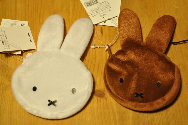 ミッフィーとメラニーの顔型小銭入れ。
