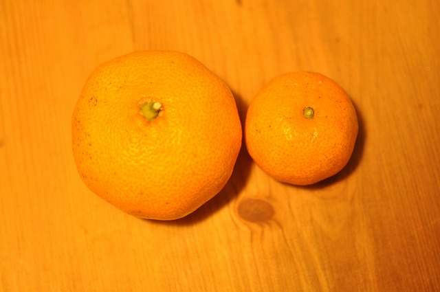対比物がなくてよくわからないけれど、結構大きめのみかんとかな~り小さいみかん。