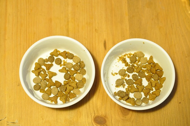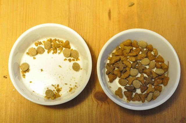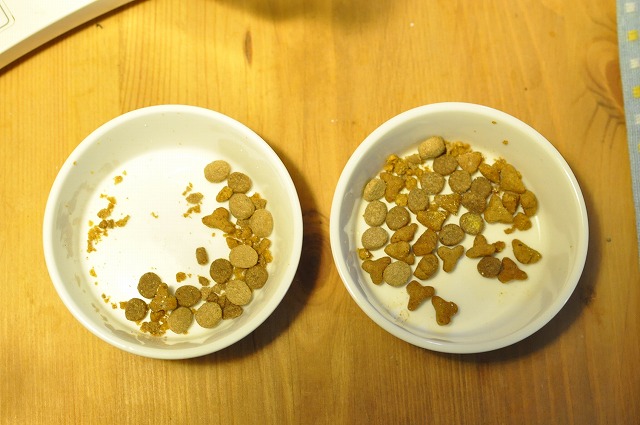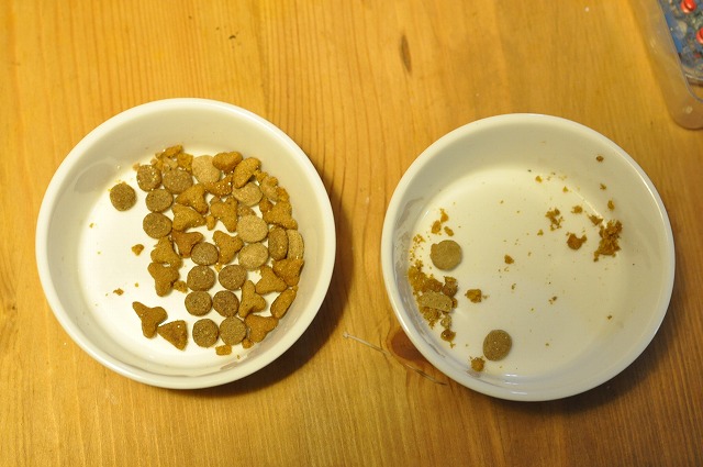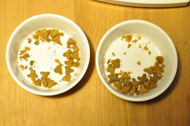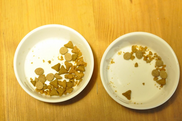 お試しフードはリチャはマーガレットさんほど好きじゃないのか、リチャの方にはそこそこ残ってる