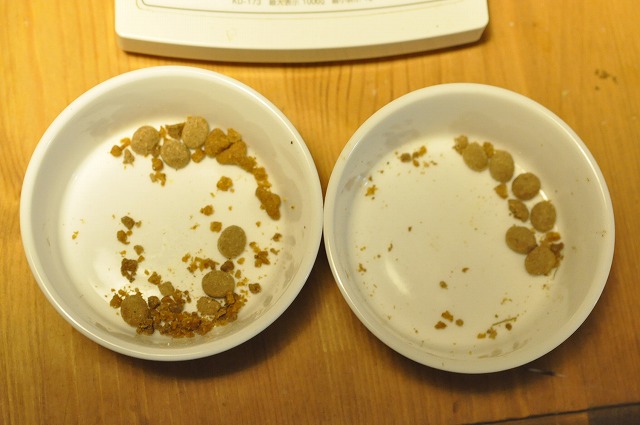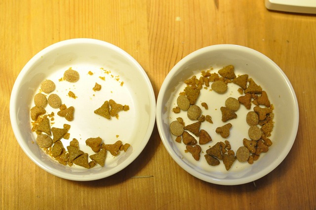 食べ残し。同じくらいだけれどもとの量がリチャのほうが大分多いので