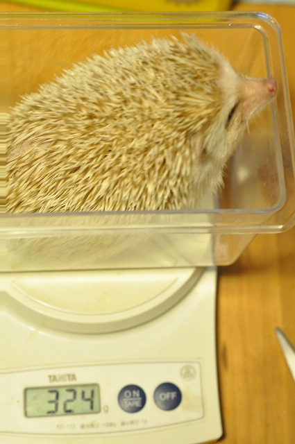 今日は妙に、体重測定用プラケースの隅に詰まっていたリチャ(体重測定写真参照)。