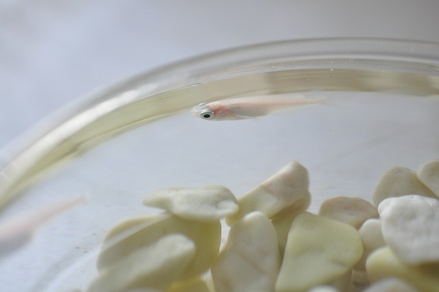 白めだかというのでしょうか。普通のメダカ(ヒメダカ?)より白くて微妙にピンクっぽい。