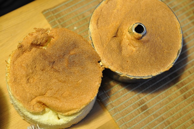 プリンは卵黄しか使わないので残った卵白で簡単なシフォンケーキを。