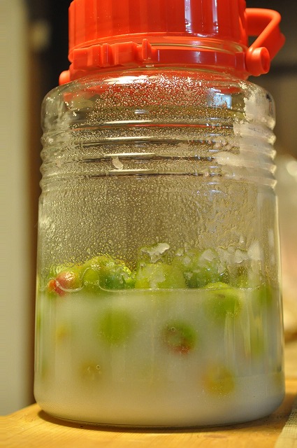 梅シロップはだいぶ砂糖が溶けた。まだ微妙に残ってるけれど…。