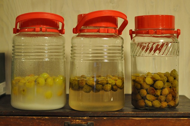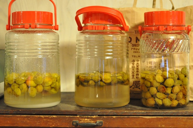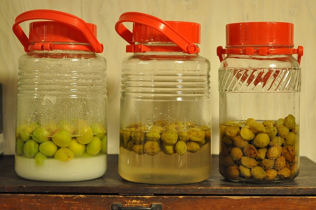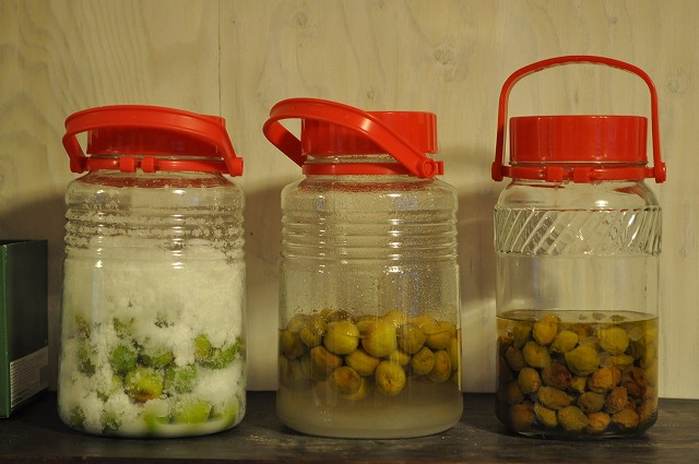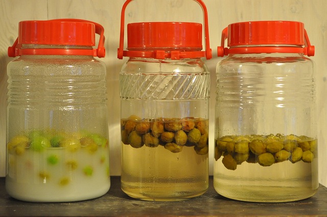 真ん中のシロップはそろそろ梅を引き上げたほうが良さそう。
