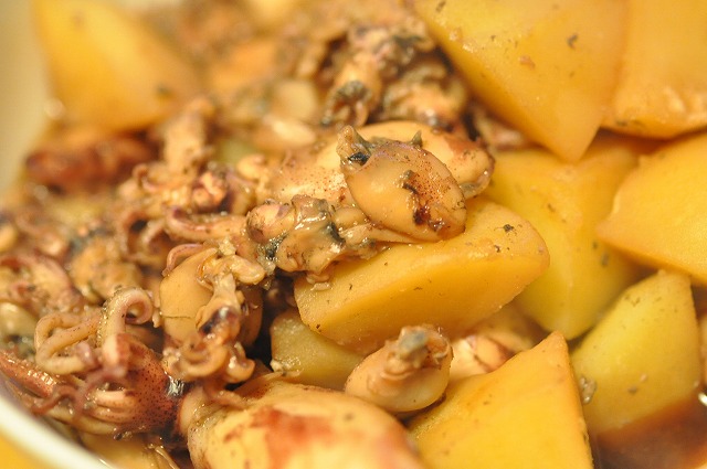 ジャガイモと一緒に煮てみた。お醤油、酒、みりん、砂糖少々という感じで適当に。