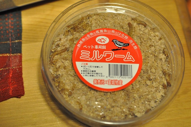 ミルワーム。食虫動物であるハリネズミの大好物として知られる生餌のアレ。300円でした。相場よりちょっと高め?