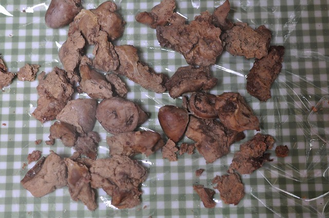 細かい繊維がぽろぽろ抜けて外に掻き出されています。
