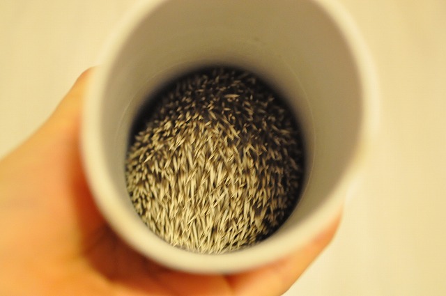 ハリネズミのことを調べ始めたころ、タオルやTシャツなどの繊維質のものをケージに入れておくと、ほつれた糸が絡まって、ハリが自分ではずそうと無理して切断などの大怪我につながることがある、というのを読んで、(・ω・ )そんなのものすごーくレアケースなんじゃ?と思ったのですけれど、そのうち調べを進めると、それほどレアではない、時々起こる事故だと知って、驚いたのですが。