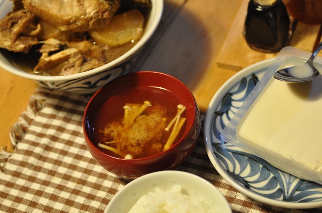 ぶり大根、えのきの味噌汁、おぼろ豆腐。