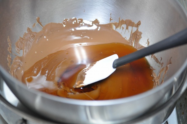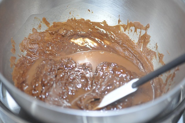 上のを混ぜると、どういう作用なのか、チョコレートが凝固しだす。
