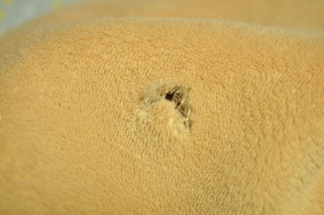 先月下旬におろしたばかりのもこもこフリースズボンに穴が...